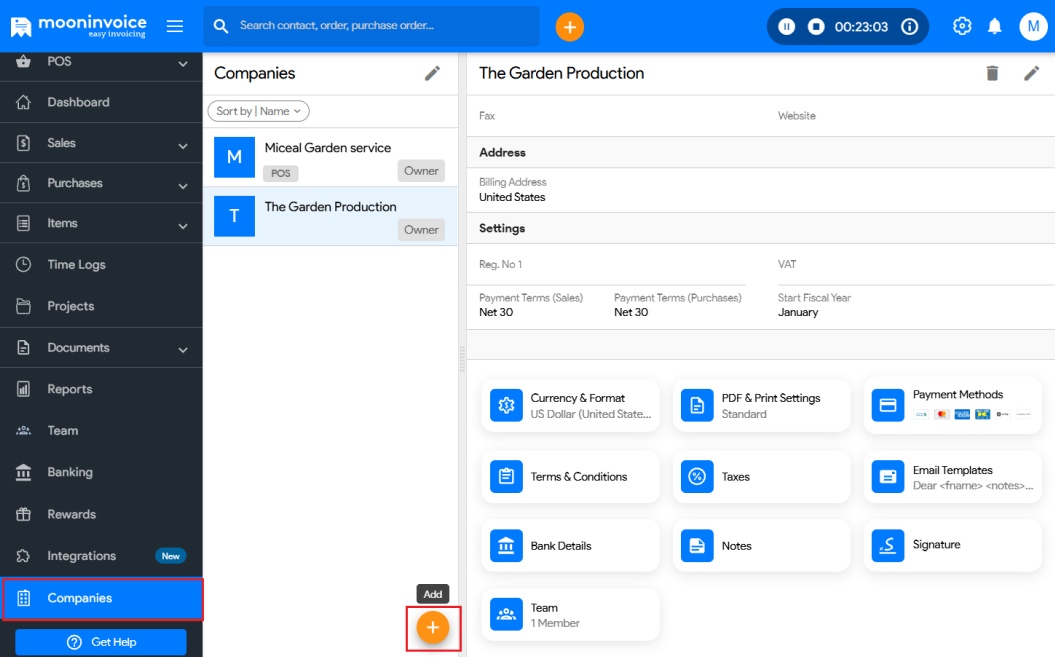 - Tap the “+” icon to add a new company.