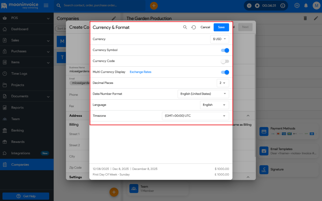 - In the ‘Currency & Format’ option, select currency, decimal places, and date/number format