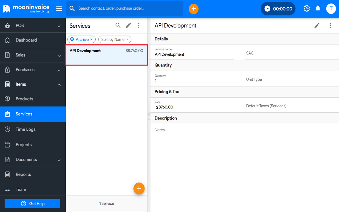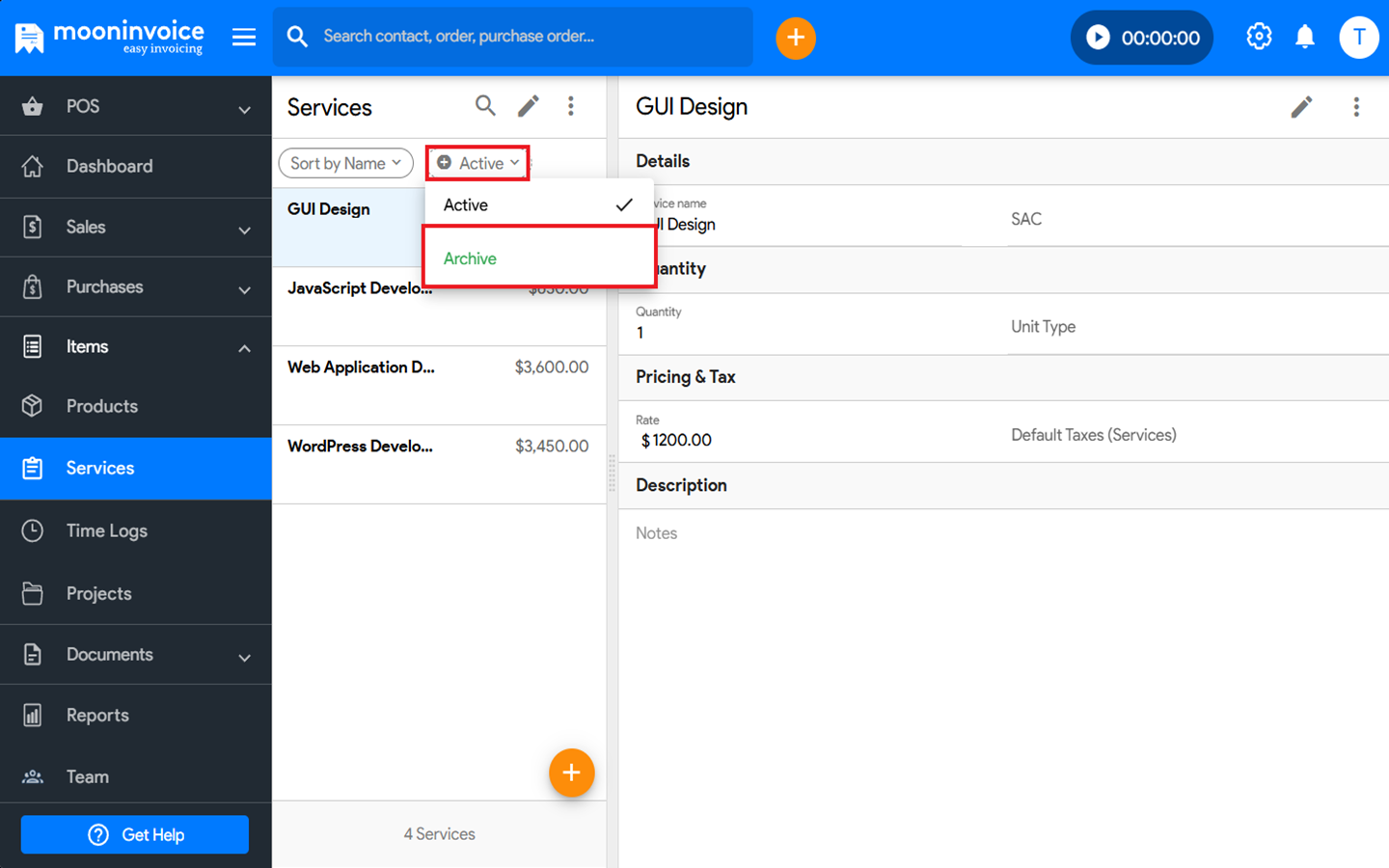 Note: To view archived services, click the Active option, then select Archive. You’ll then be able to see all archived services.