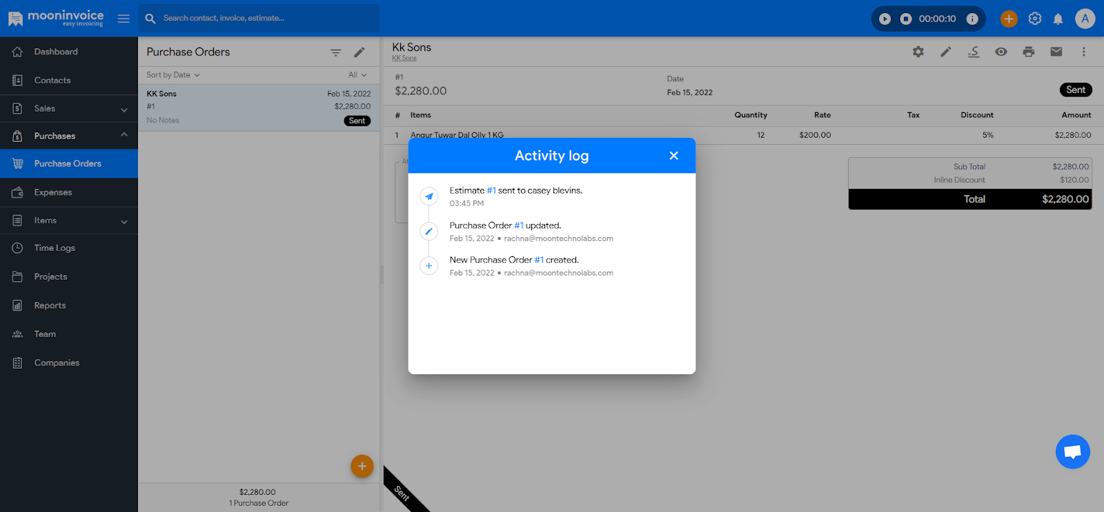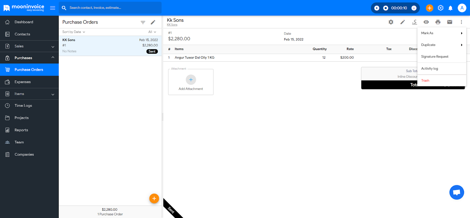 - Click on any existing purchase order that you wish to track