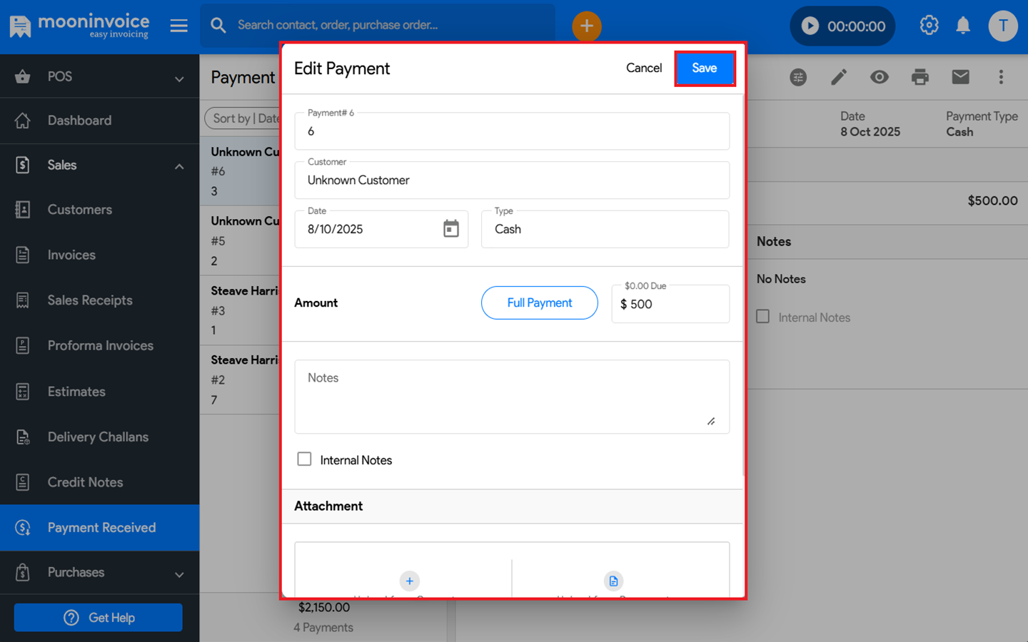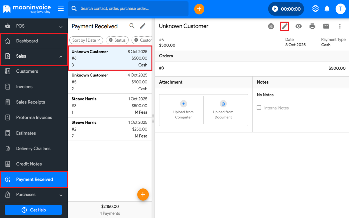 You can edit the payment received in Moon Invoice easily by following the steps below.