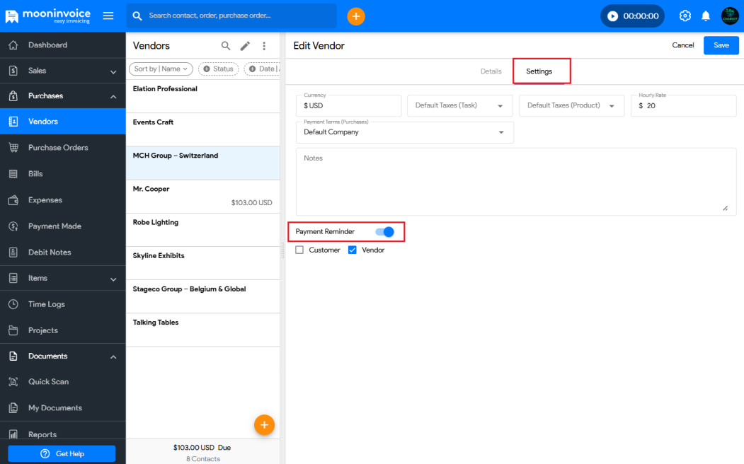 Here are the steps to turn on the Payment Reminder for Vendors: