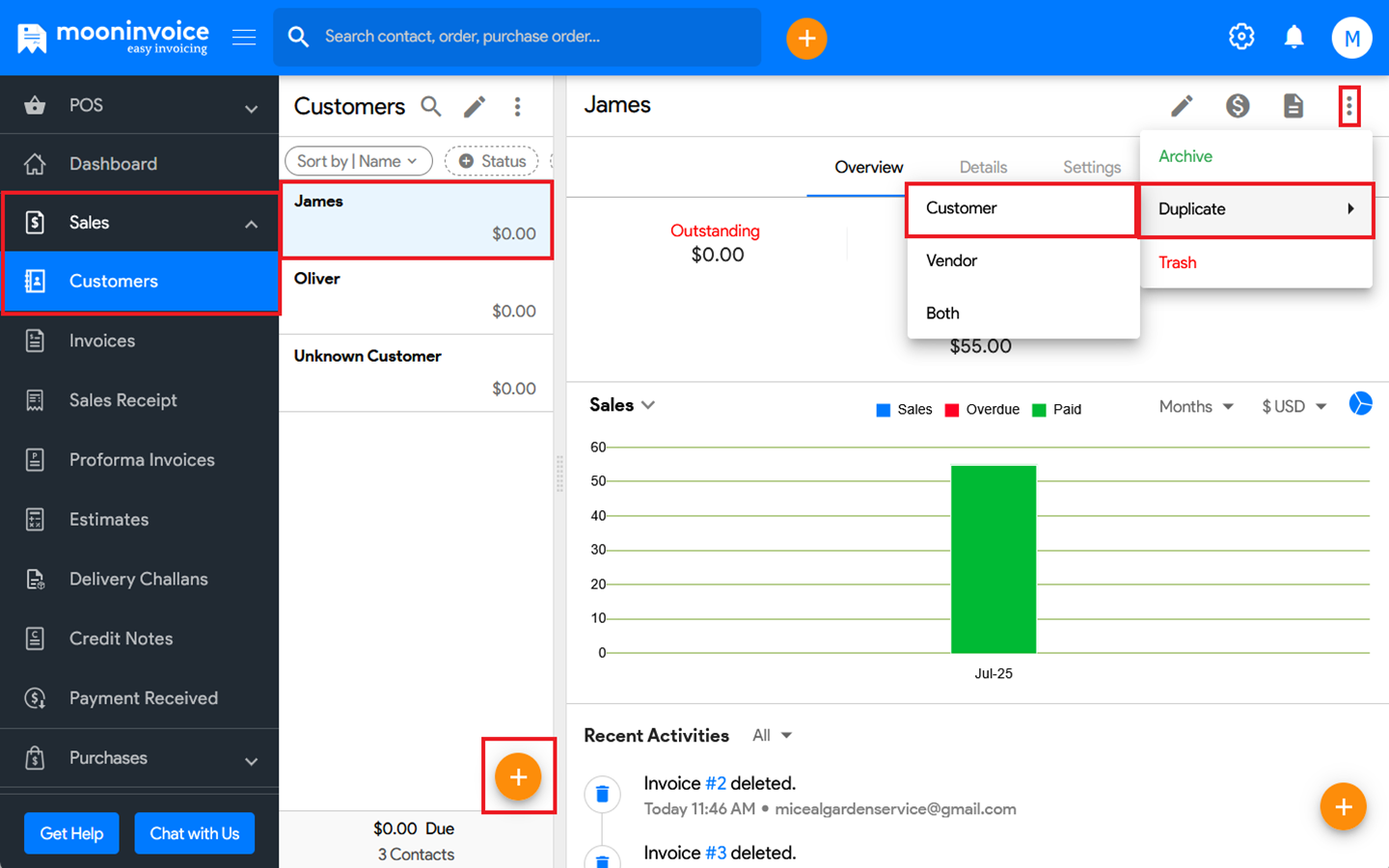 You can duplicate a customer in Moon Invoice easily by following the steps below.