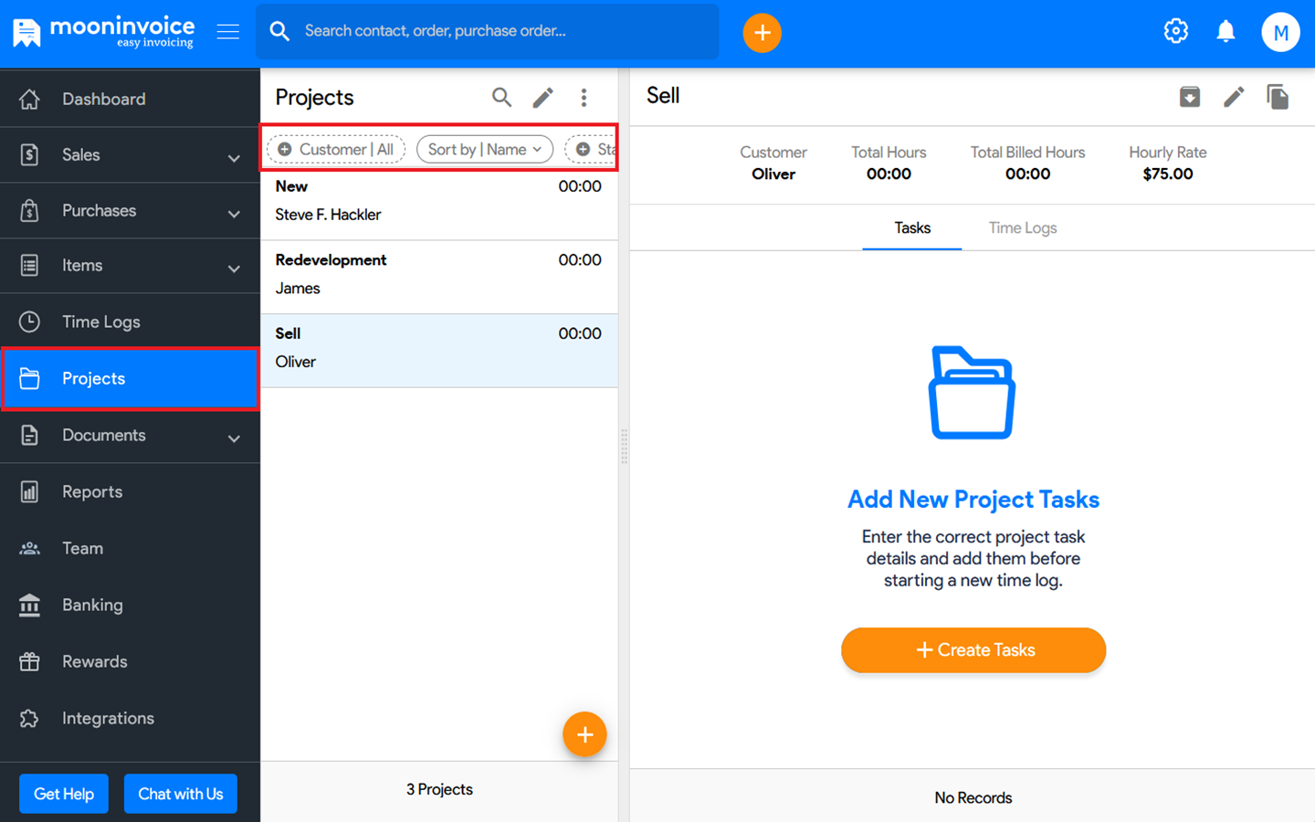 You can filter the projects in Moon Invoice easily by following the steps below.