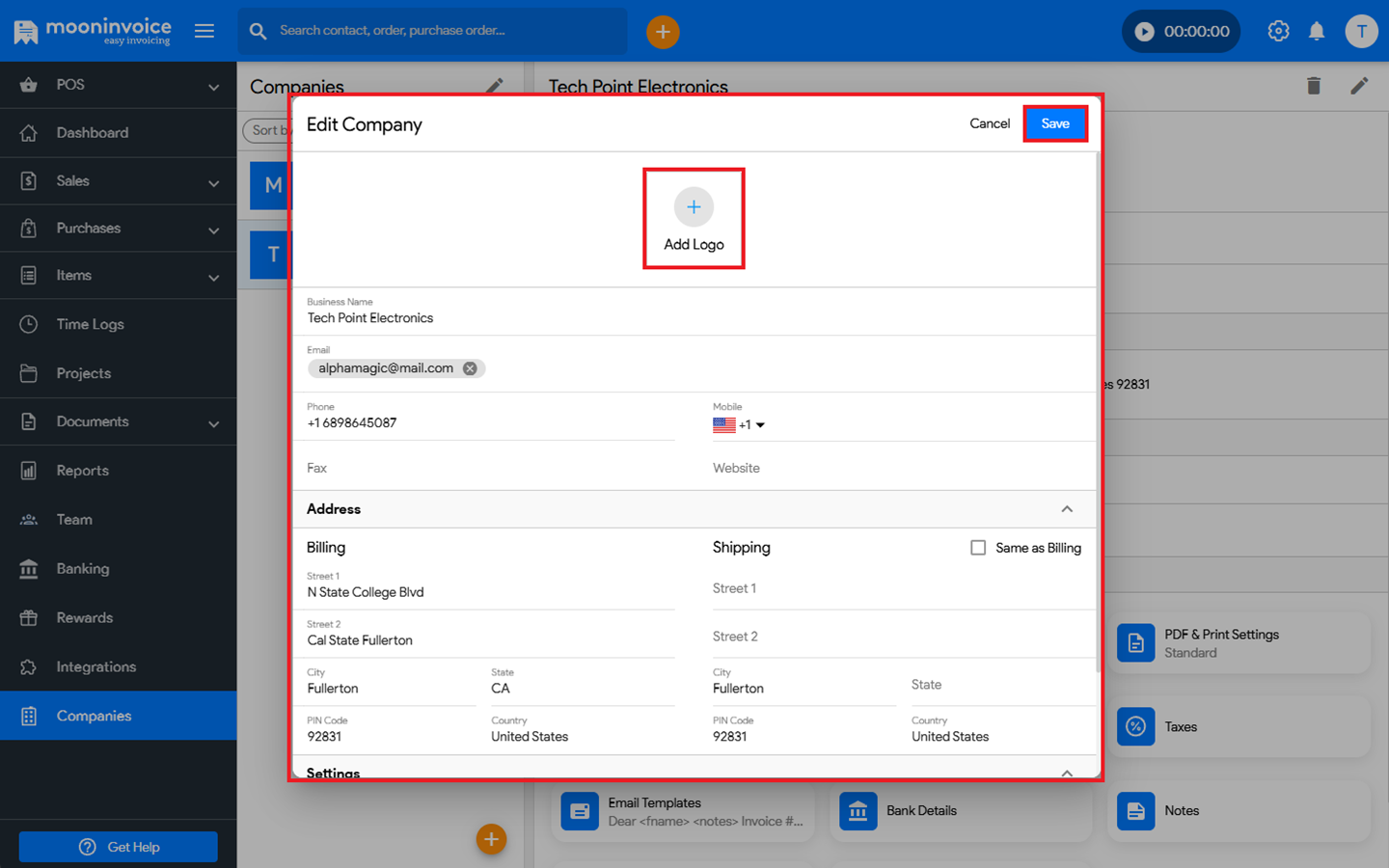 You can easily add a logo to your company in Moon Invoice by following the steps below.