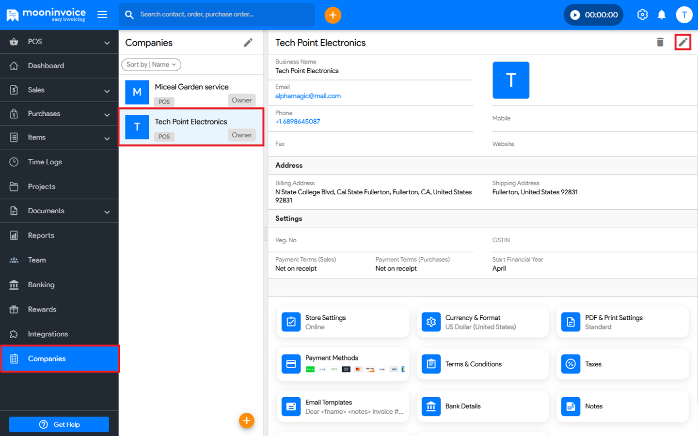 - Navigate to Companies and select your company.