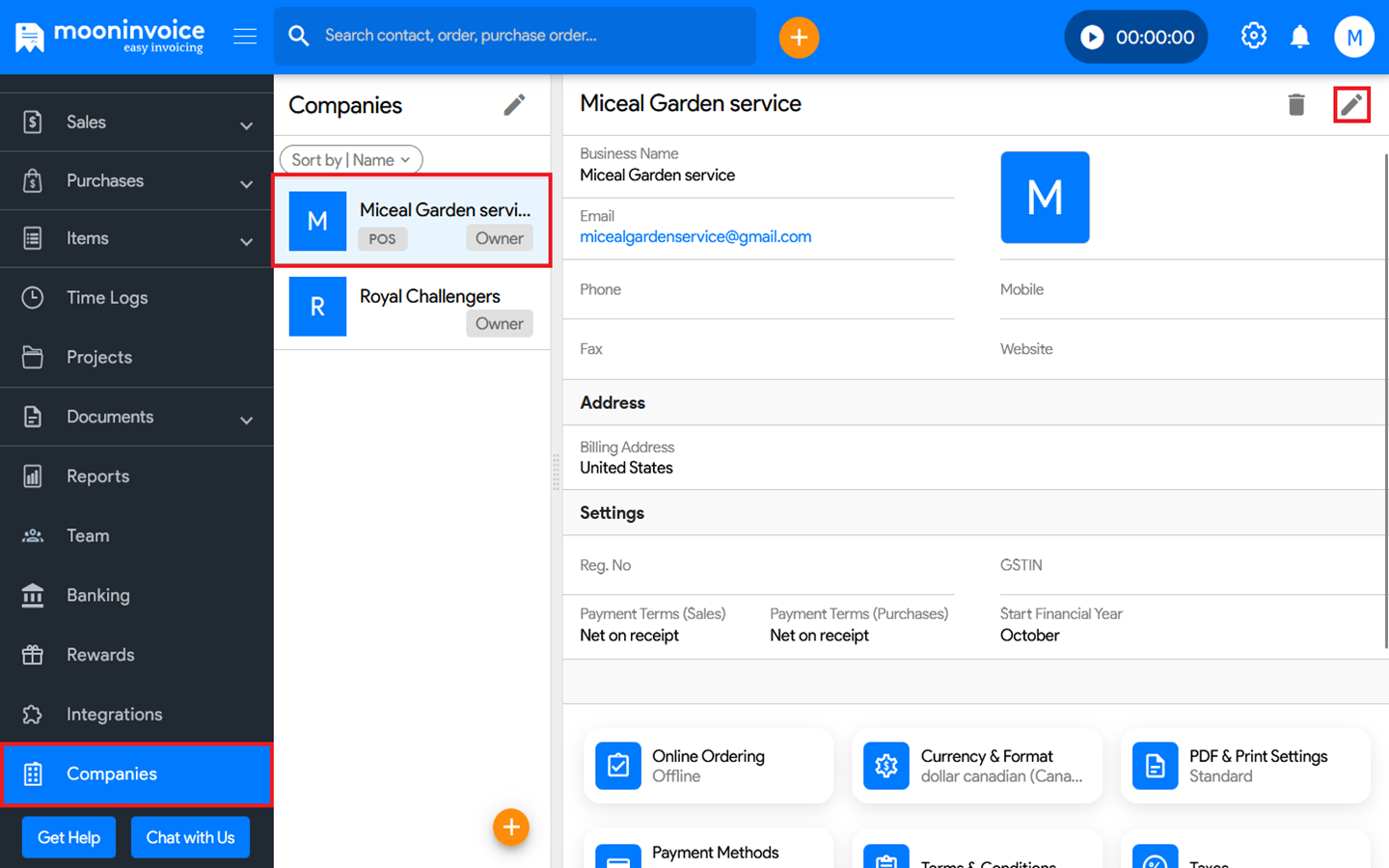 You can edit the company details in Moon Invoice easily by following the steps below.