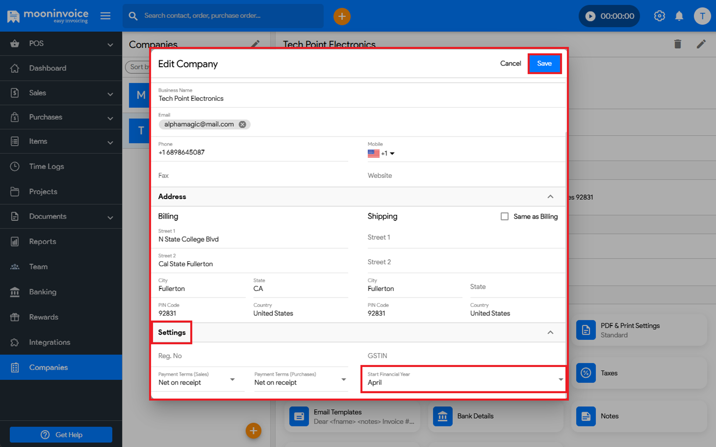 You can easily set the financial year start month in Moon Invoice by following the steps below.