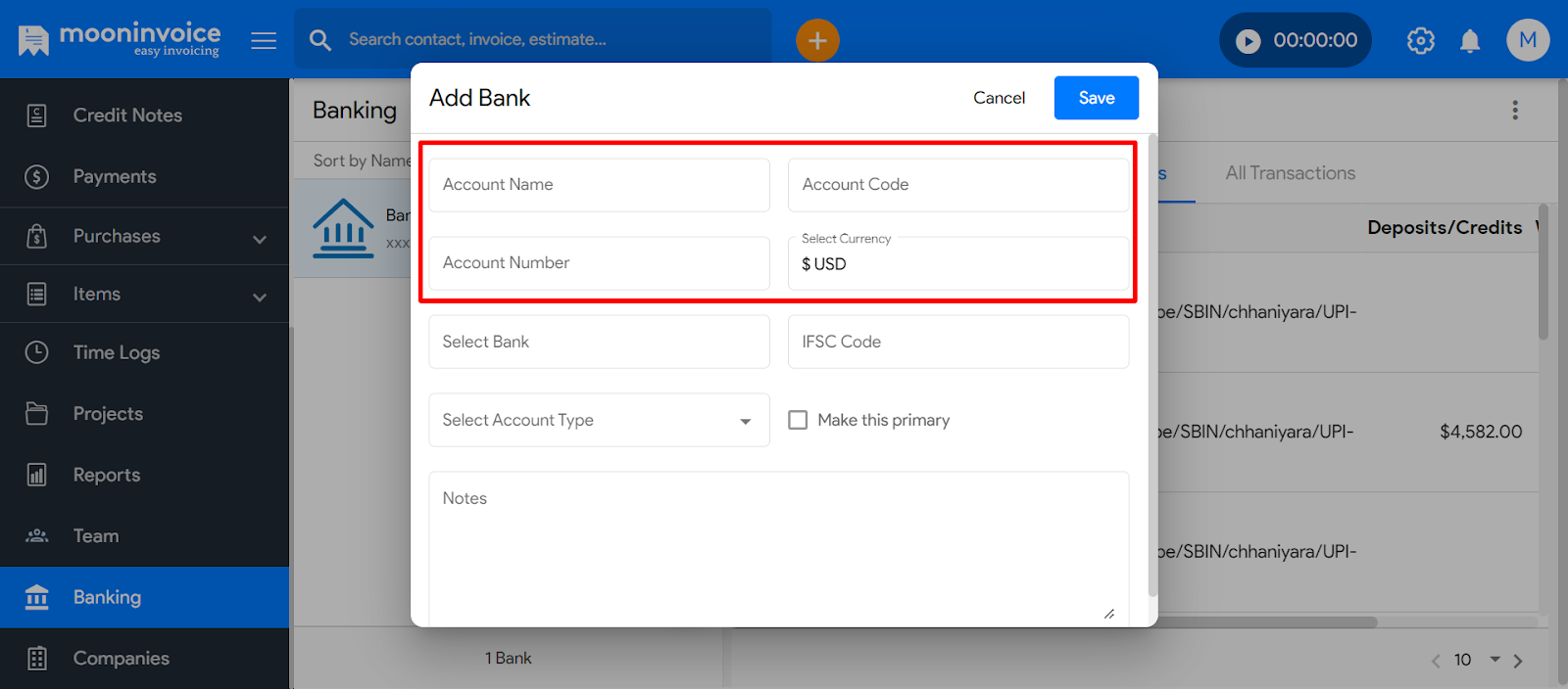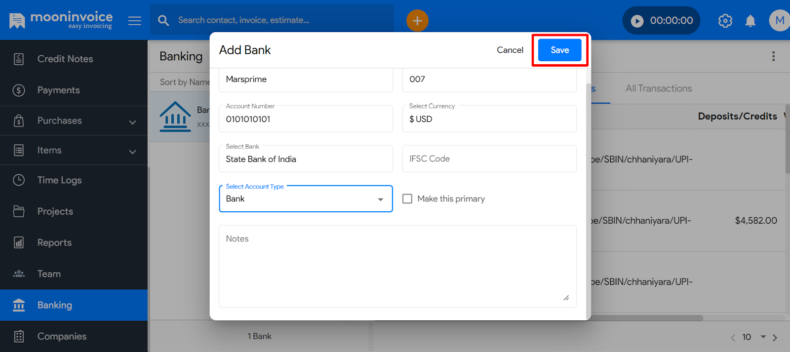 - If this is your primary bank account, mark the checkbox accordingly