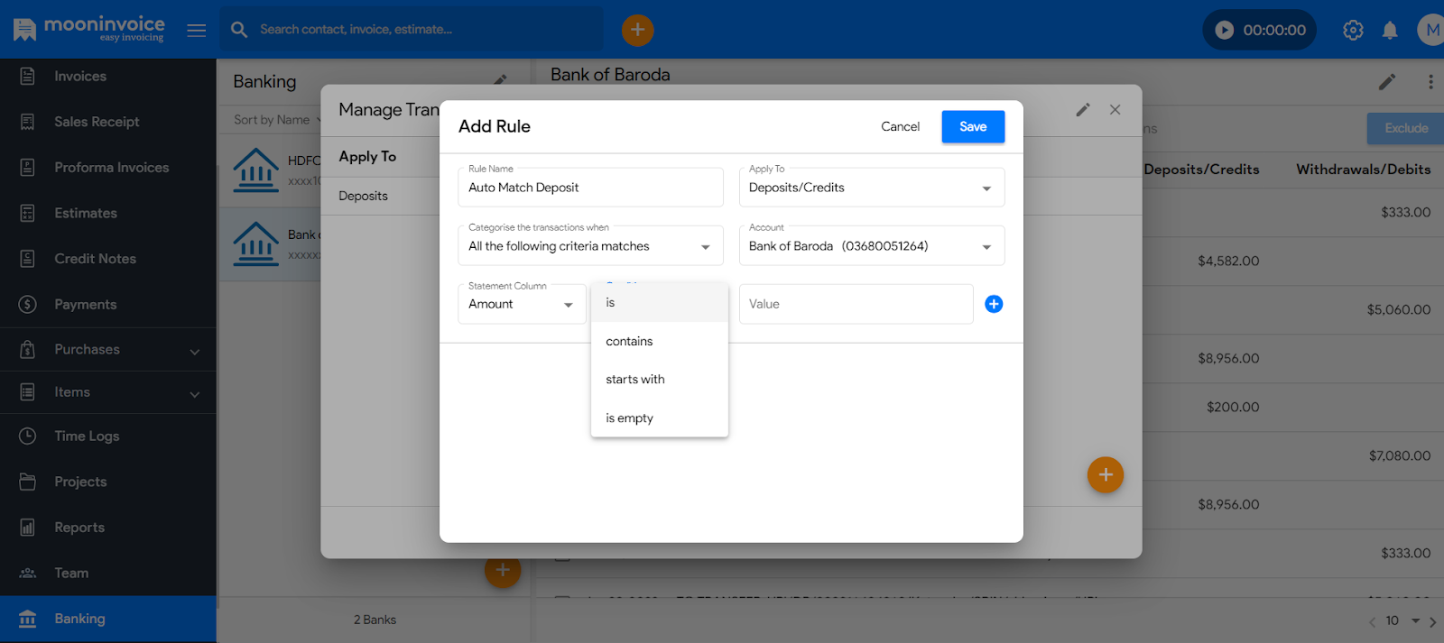 - Here, you have various conditions to choose from, such as "is," "contains," "starts with," or "is