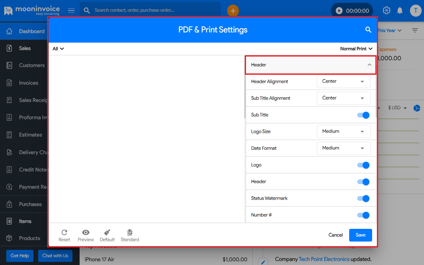 You can easily turn off document copy label in Moon Invoice by following the steps below.