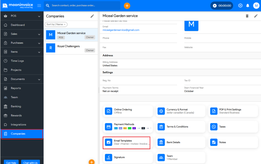 - Go to Companies > Email Templates.