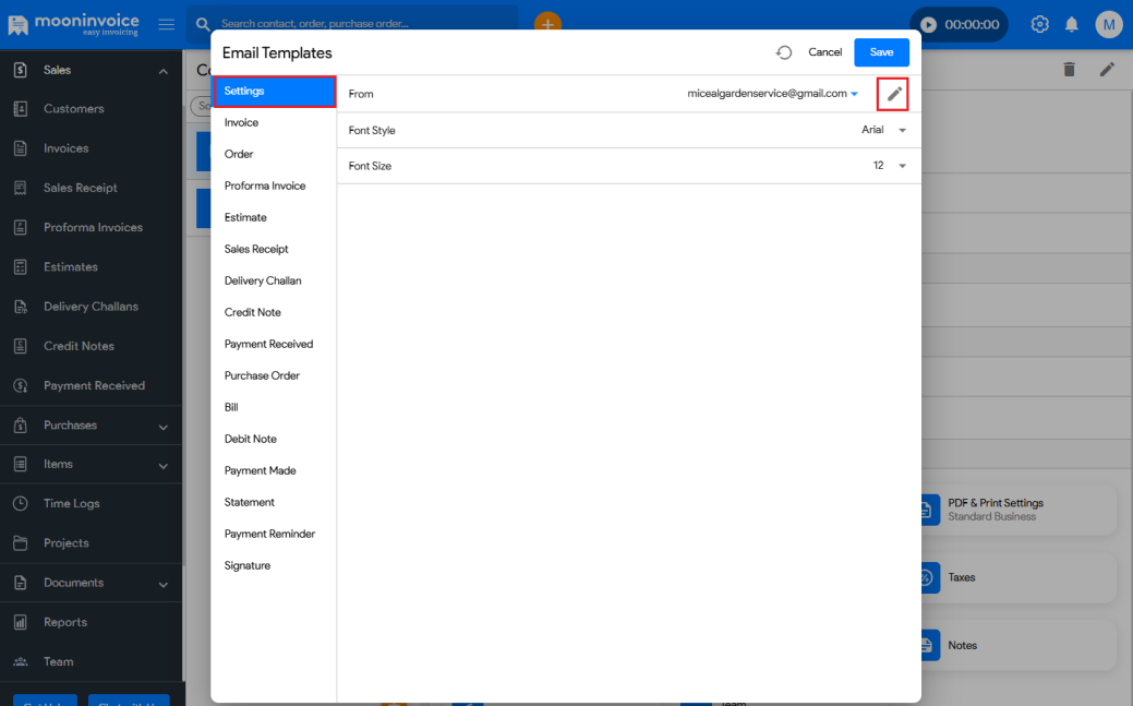 - In the Settings tab, click on the Edit icon of the email.