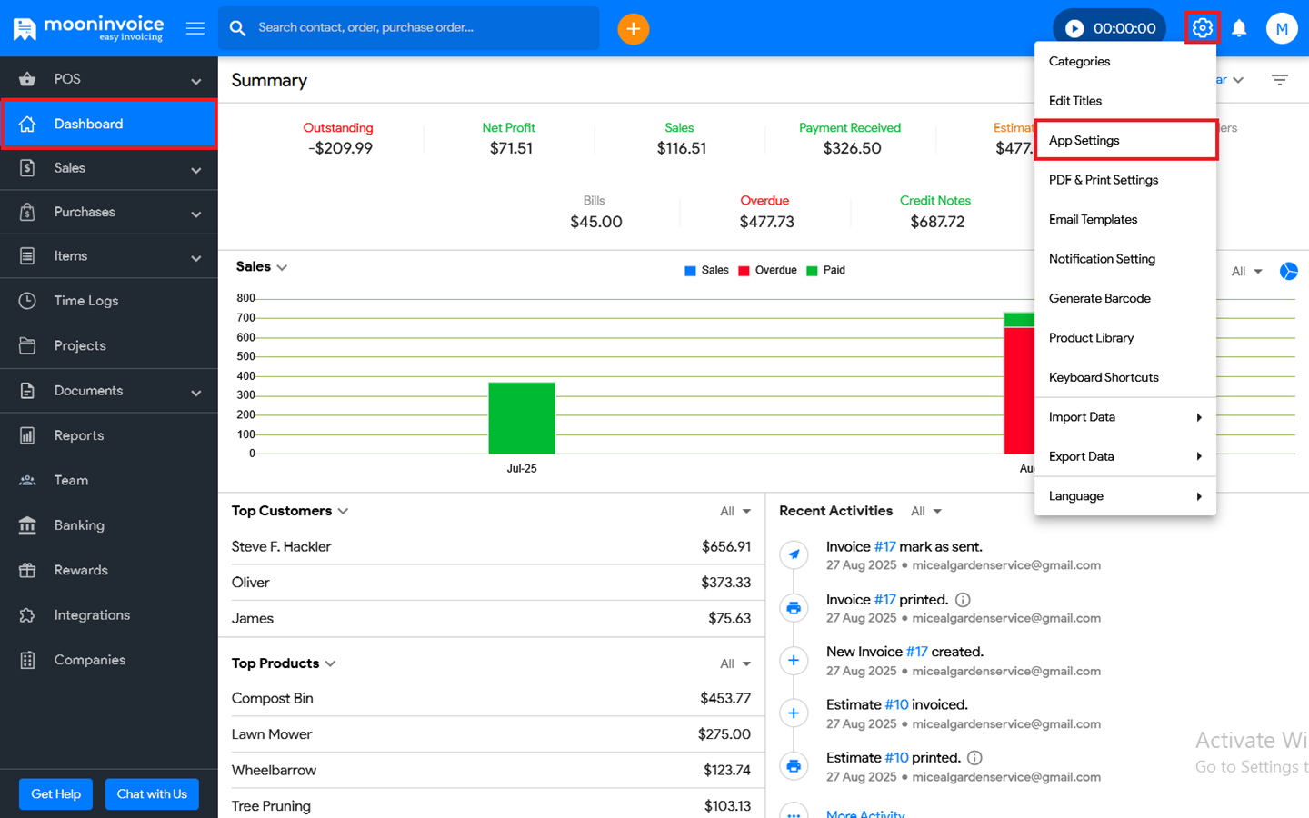 - Navigate to App Settings ➜ Invoice.