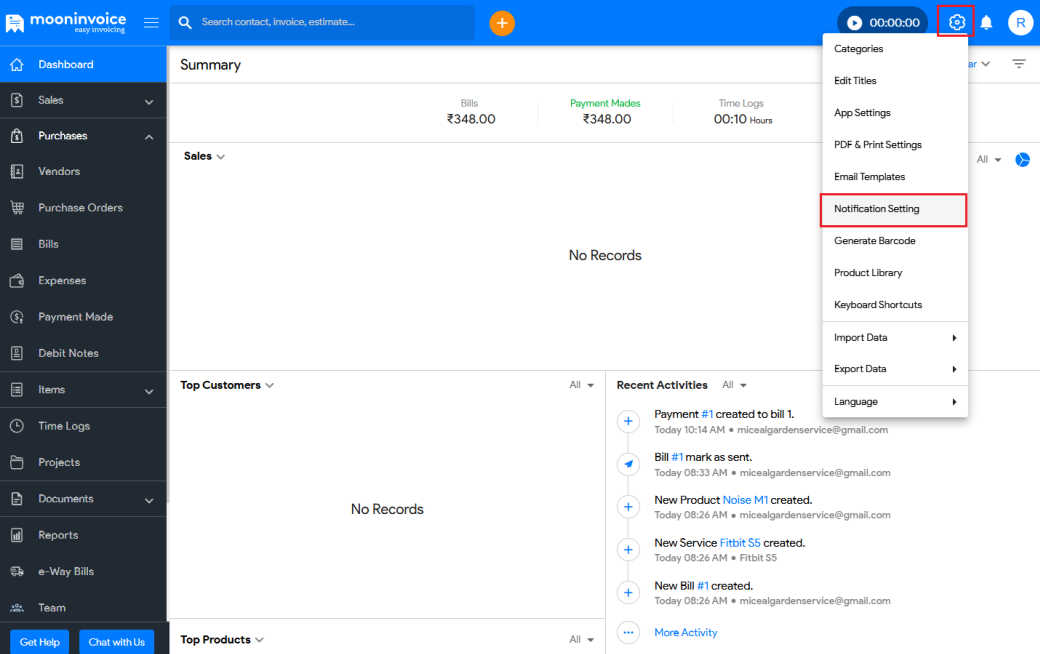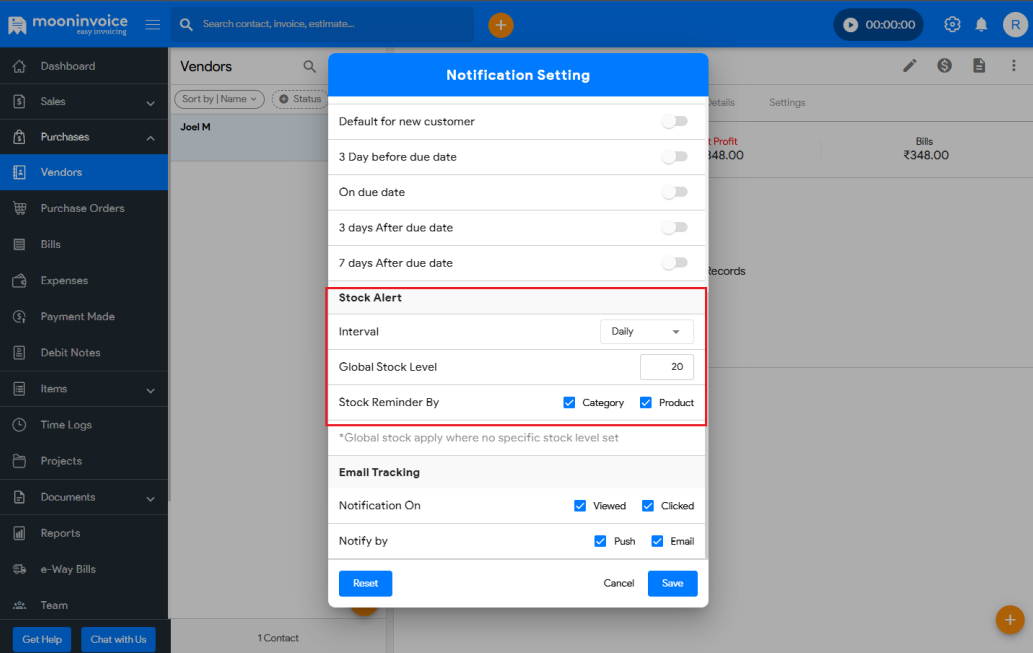 - Now, Moon Invoice will notify you via email when your stock reaches the set threshold.