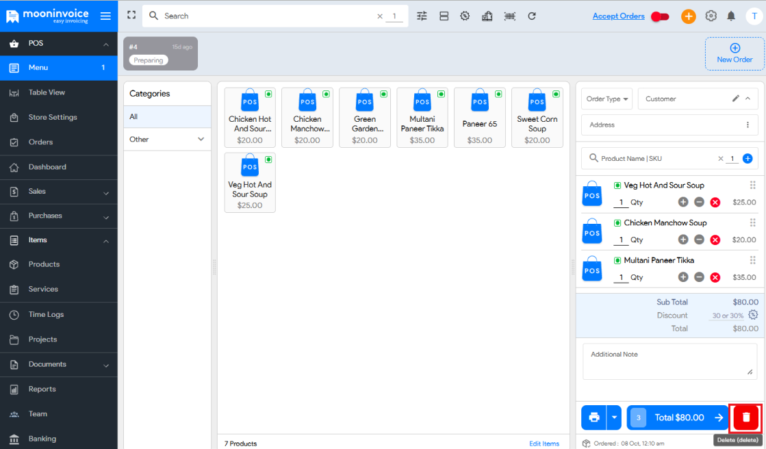 - Note: Once deleted, the order cannot be recovered.