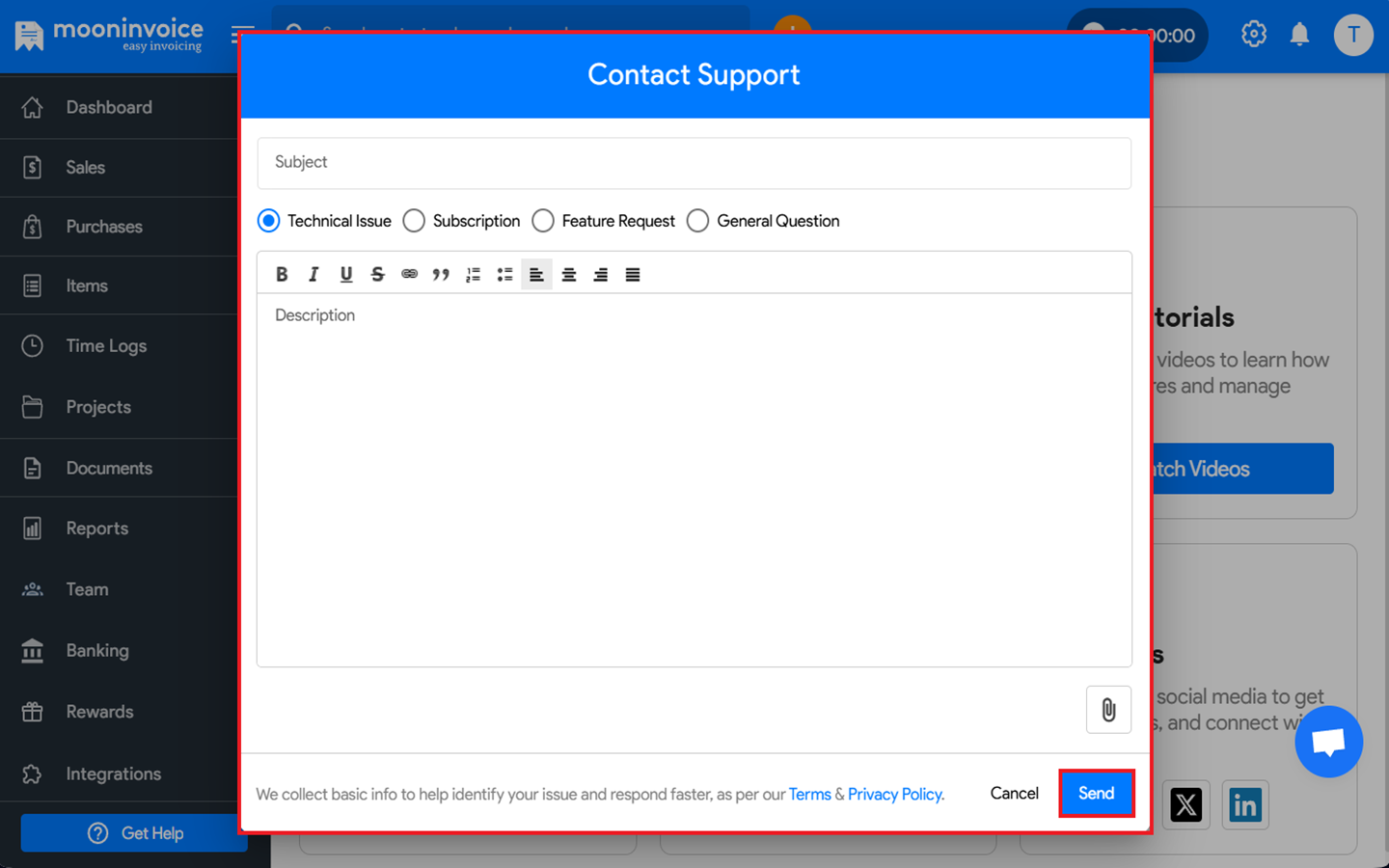 You can raise an Issue in Moon Invoice easily by following the steps below.