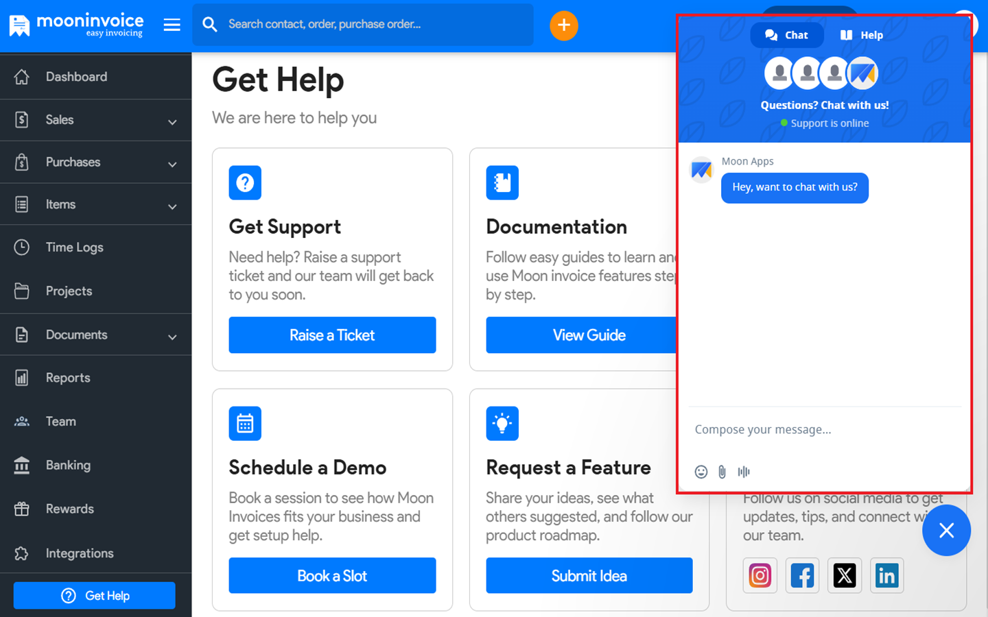 - Open the Moon Invoice application on your device or tap on this link.