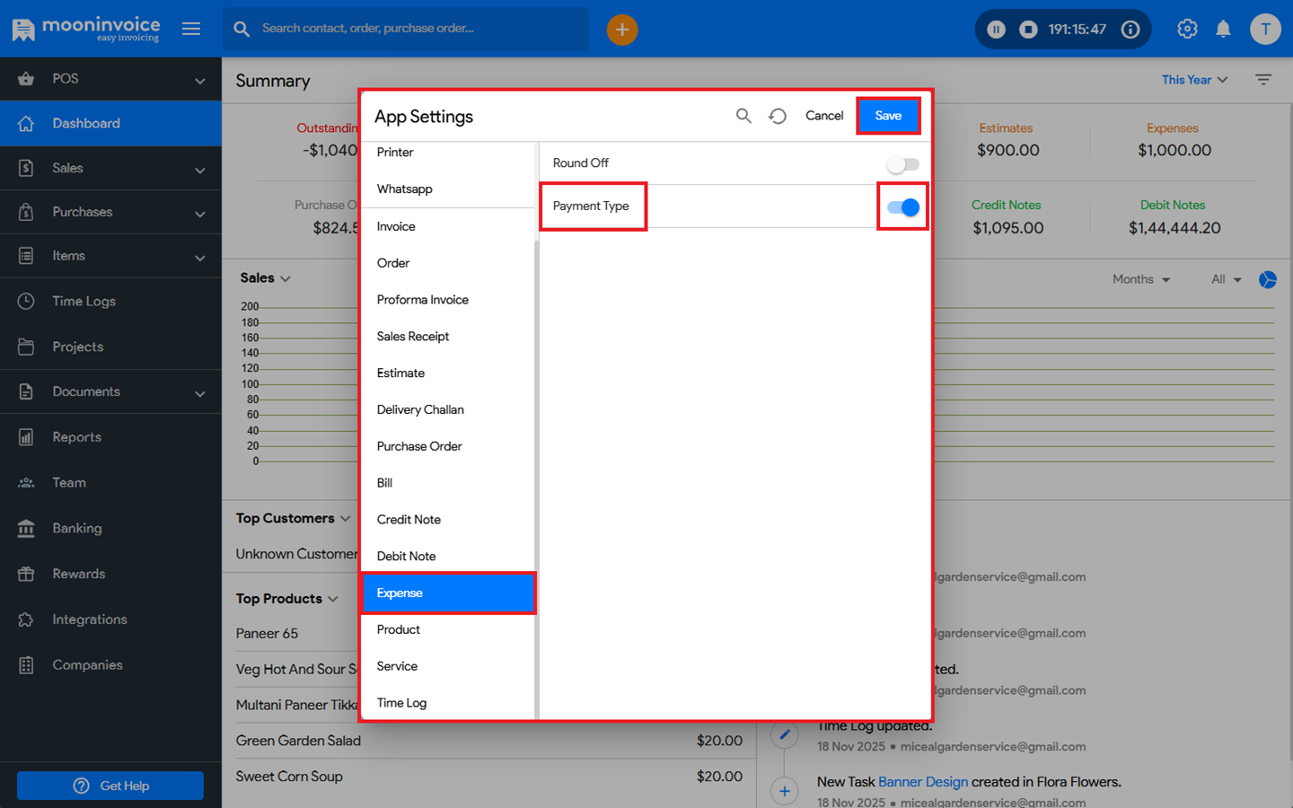 You can easily disable the payment type for expense in Moon Invoice by following the steps below.