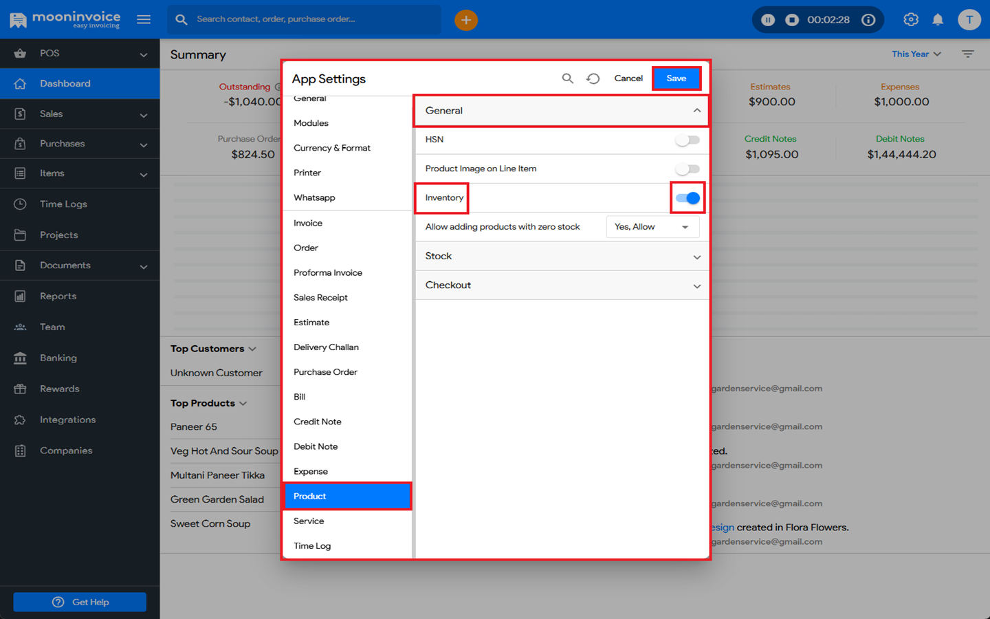 You can easily disable the Inventory option in Moon Invoice by following the steps below.