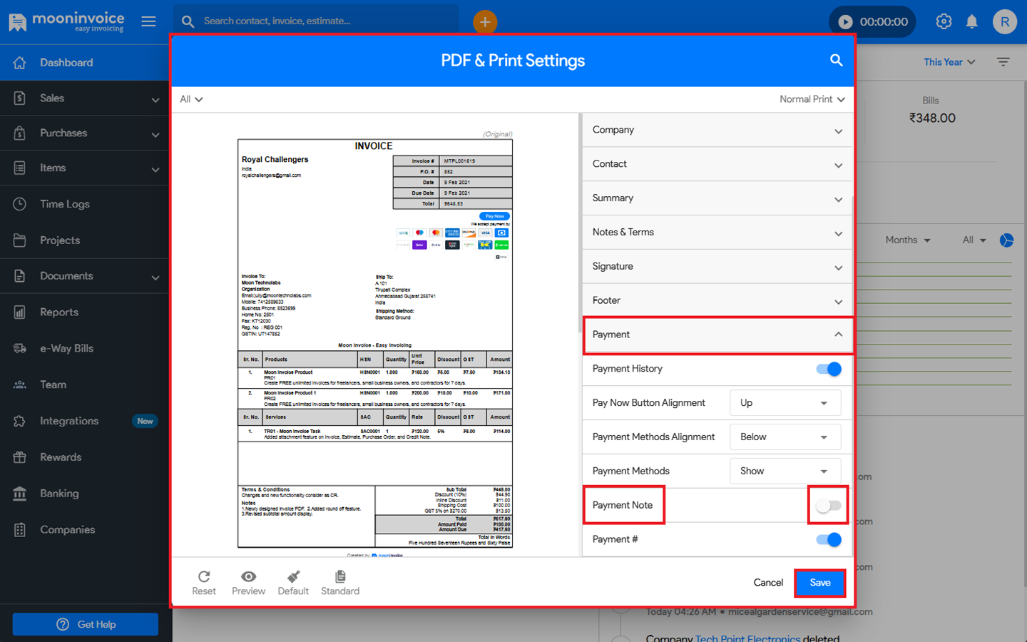 You can easily enable the payment note option in Moon Invoice by following the steps below.