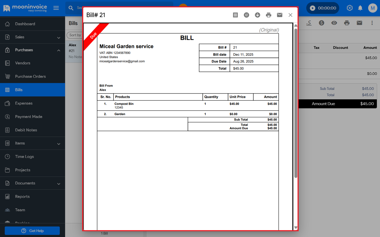 You can easily preview a bill in Moon Invoice by following the steps below.