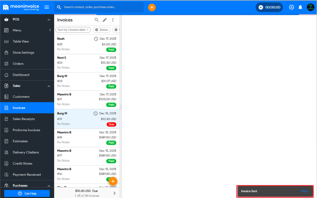 Please note that the email ID is already added to each customer’s details. If an email ID is missing, the invoice will not be sent.