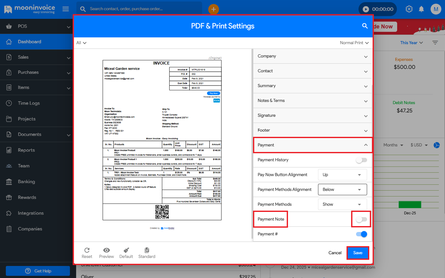 You can enable payment note in Moon Invoice easily by following the steps below.