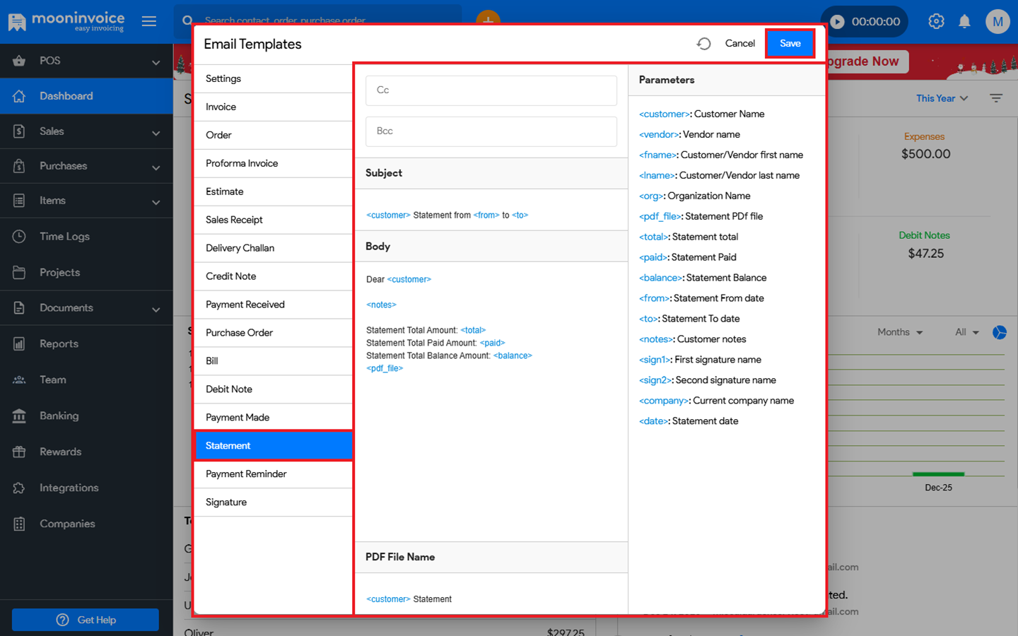 You can easily change the statement template in Moon Invoice by following the steps below.