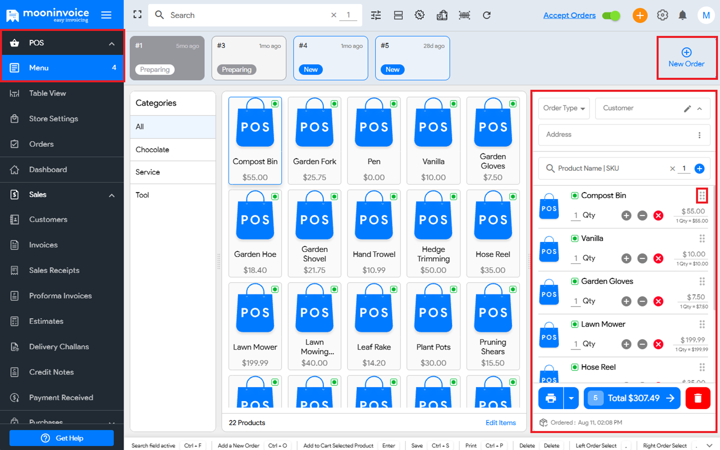 - Go to POS ➜ Menu, click on New Order on your right-hand side.