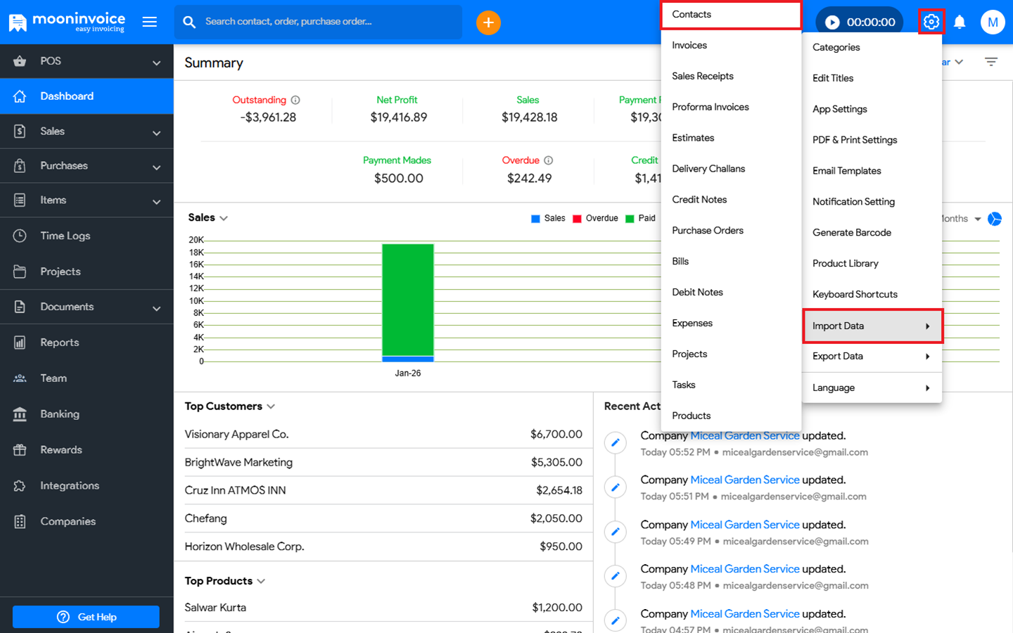 - Go to Settings → Click on Import Data → Select Contacts.