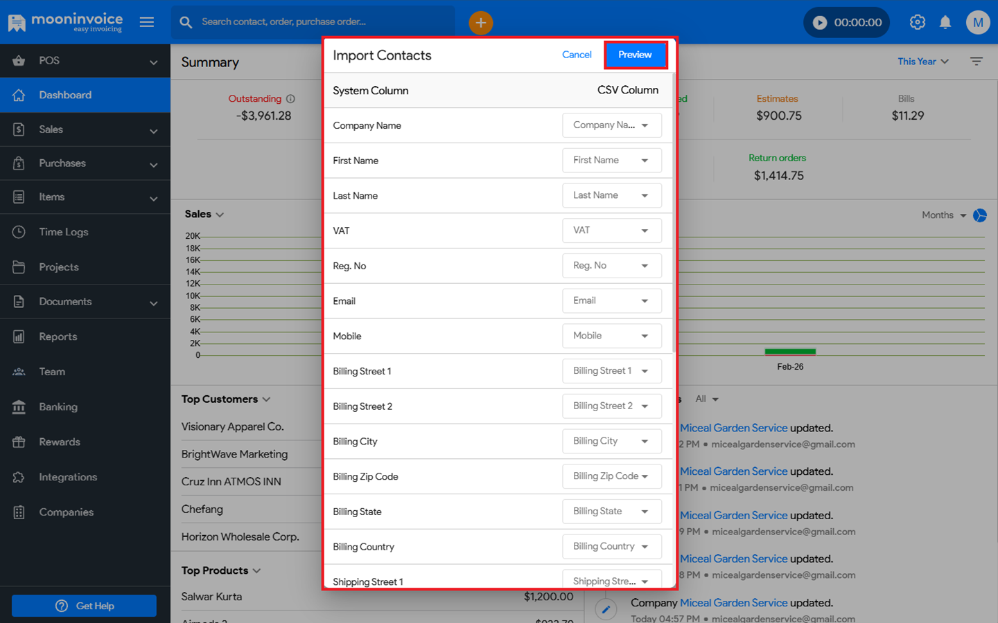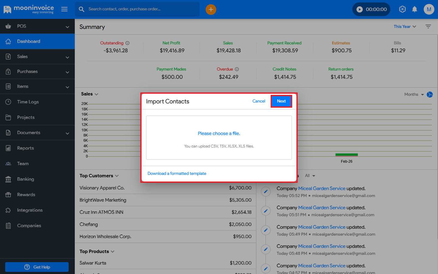 You can easily import a CSV Contact File in Moon Invoice by following the steps below.