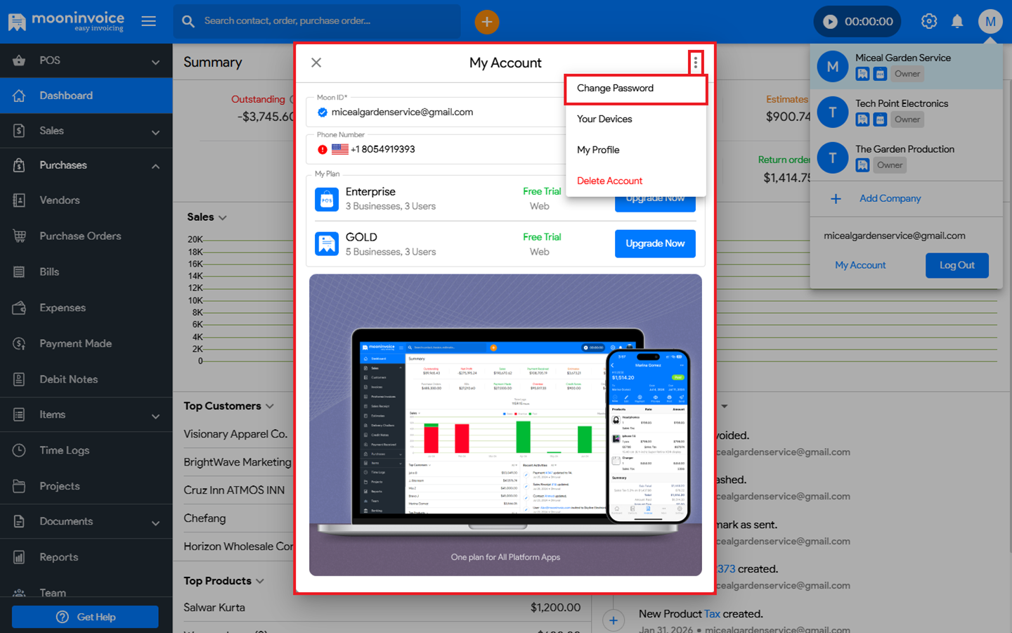You can easily change your account password in Moon Invoice by following the steps below.