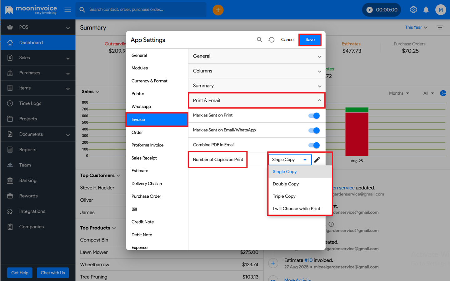 - Navigate to App Settings ➜ Invoice.