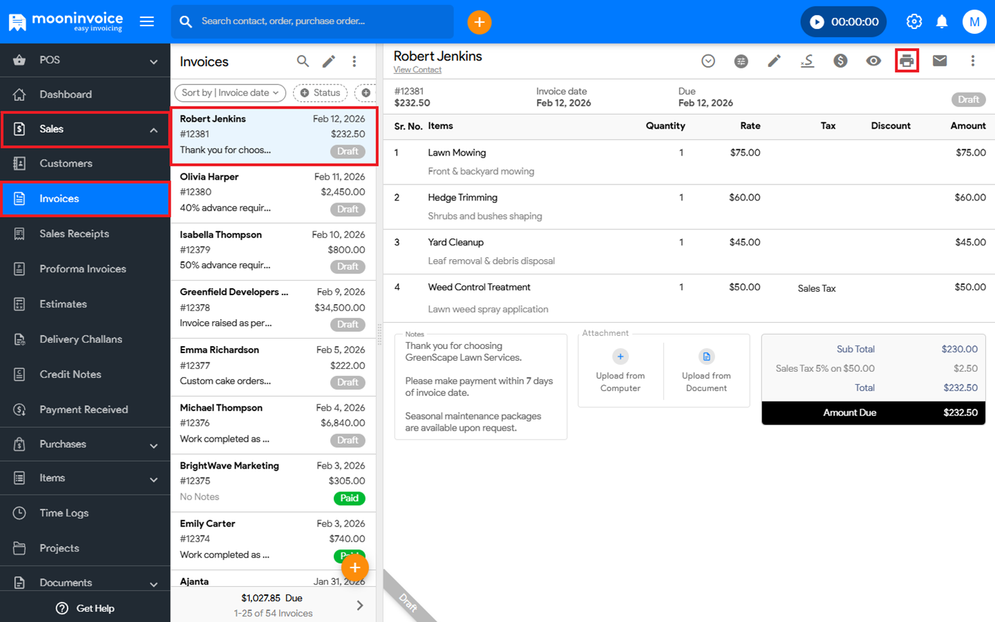 You can easily print multiple copies of pdf on the same page in Moon Invoice by following the steps below.