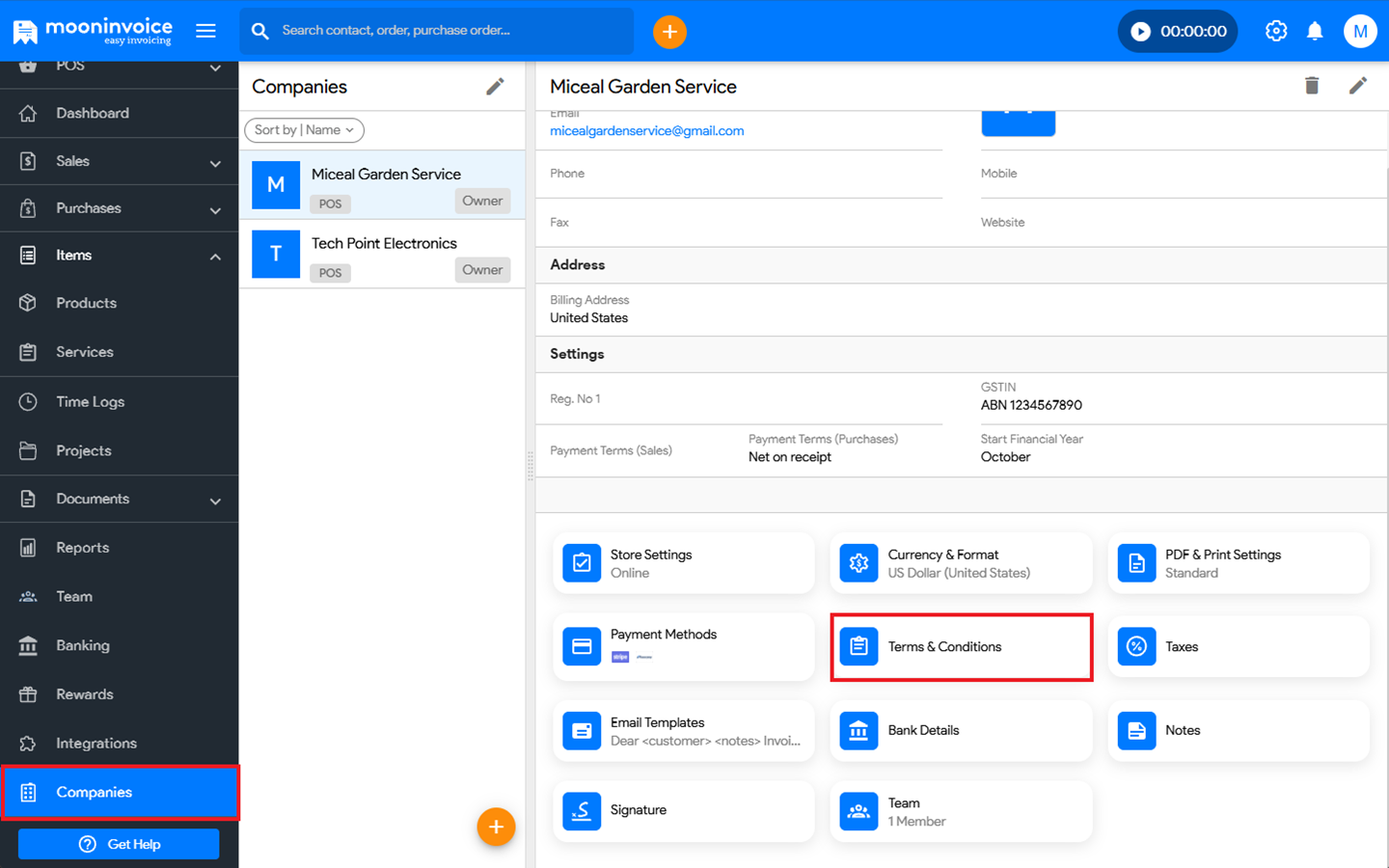 - Go to Companies ➜ Terms & Conditions.