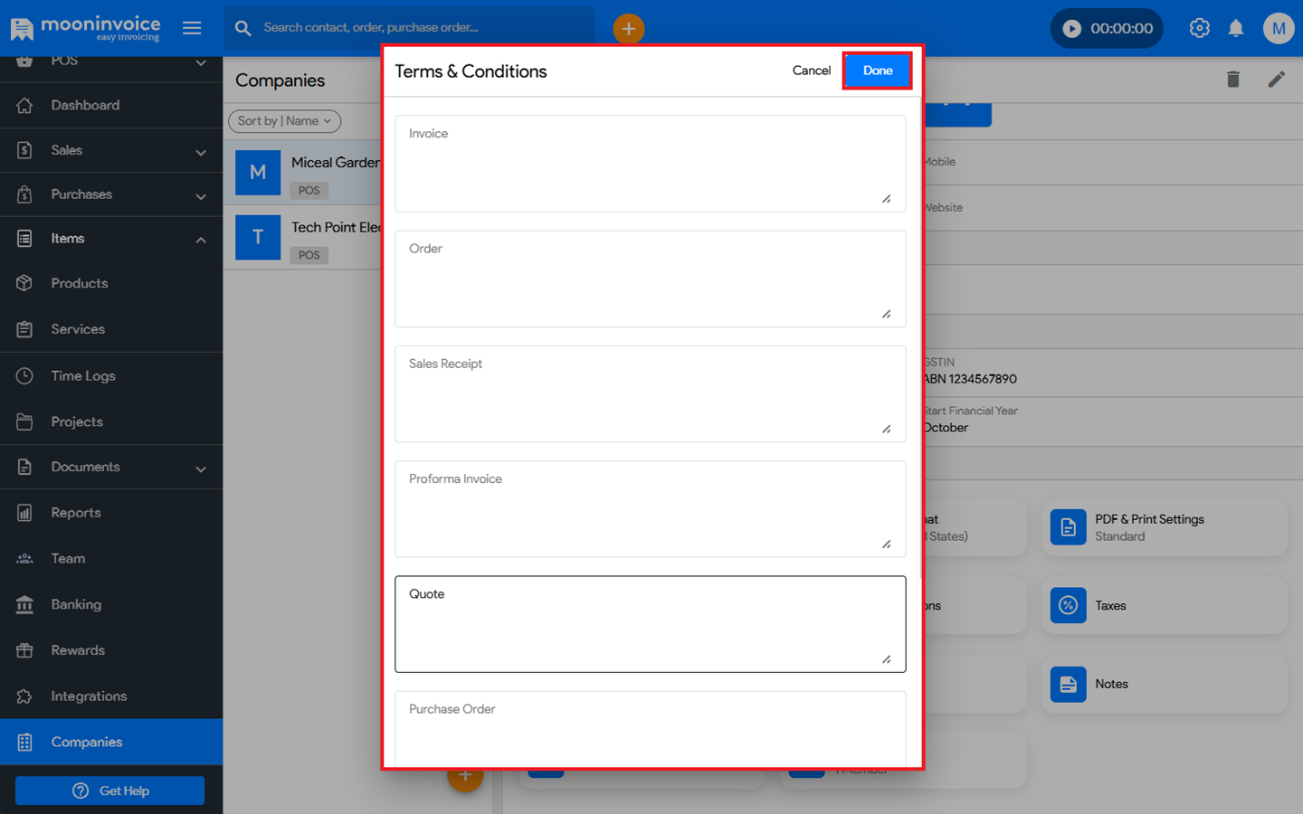 You can easily add predefined Terms & Conditions in Moon Invoice by following the steps below.