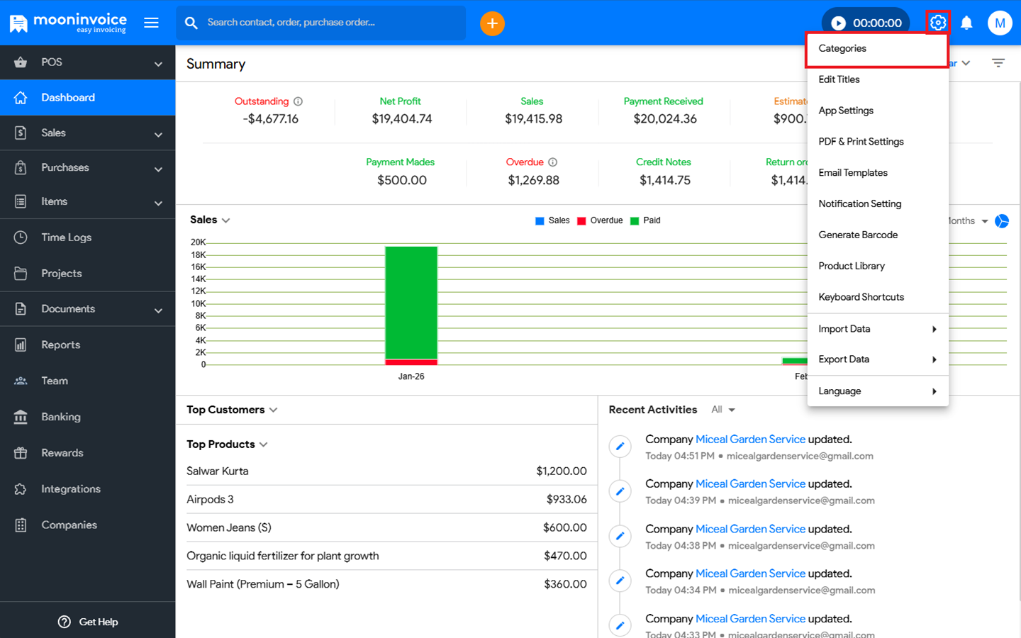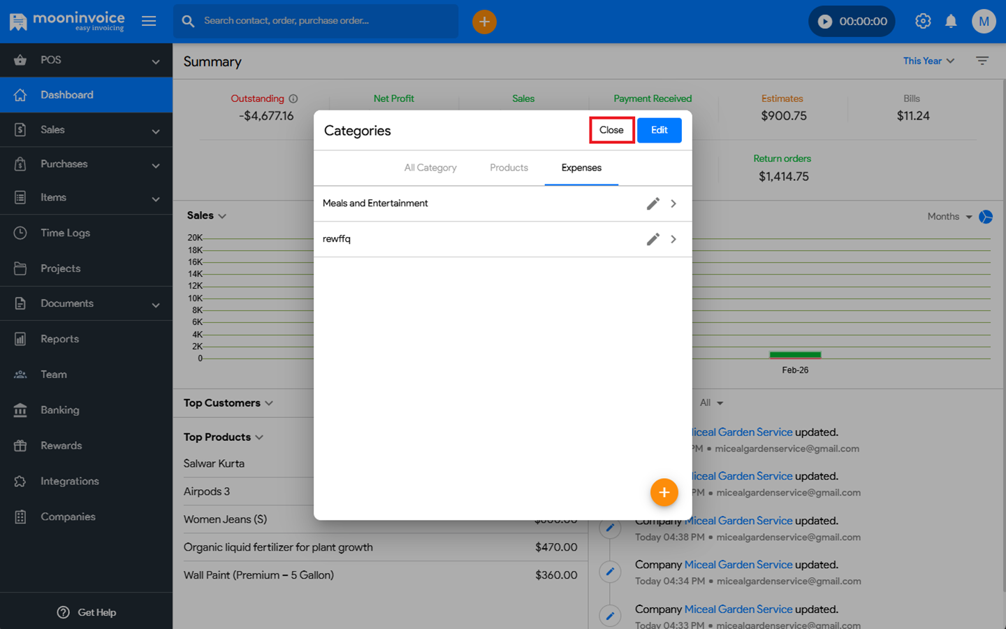 You can easily edit the expense category in Moon Invoice by following the steps below.