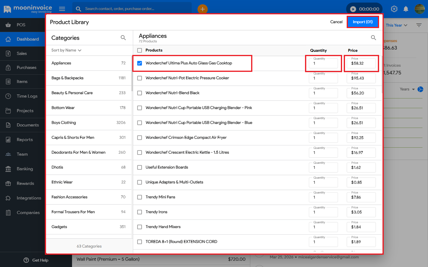 - Now, click on Import to use the selected product.