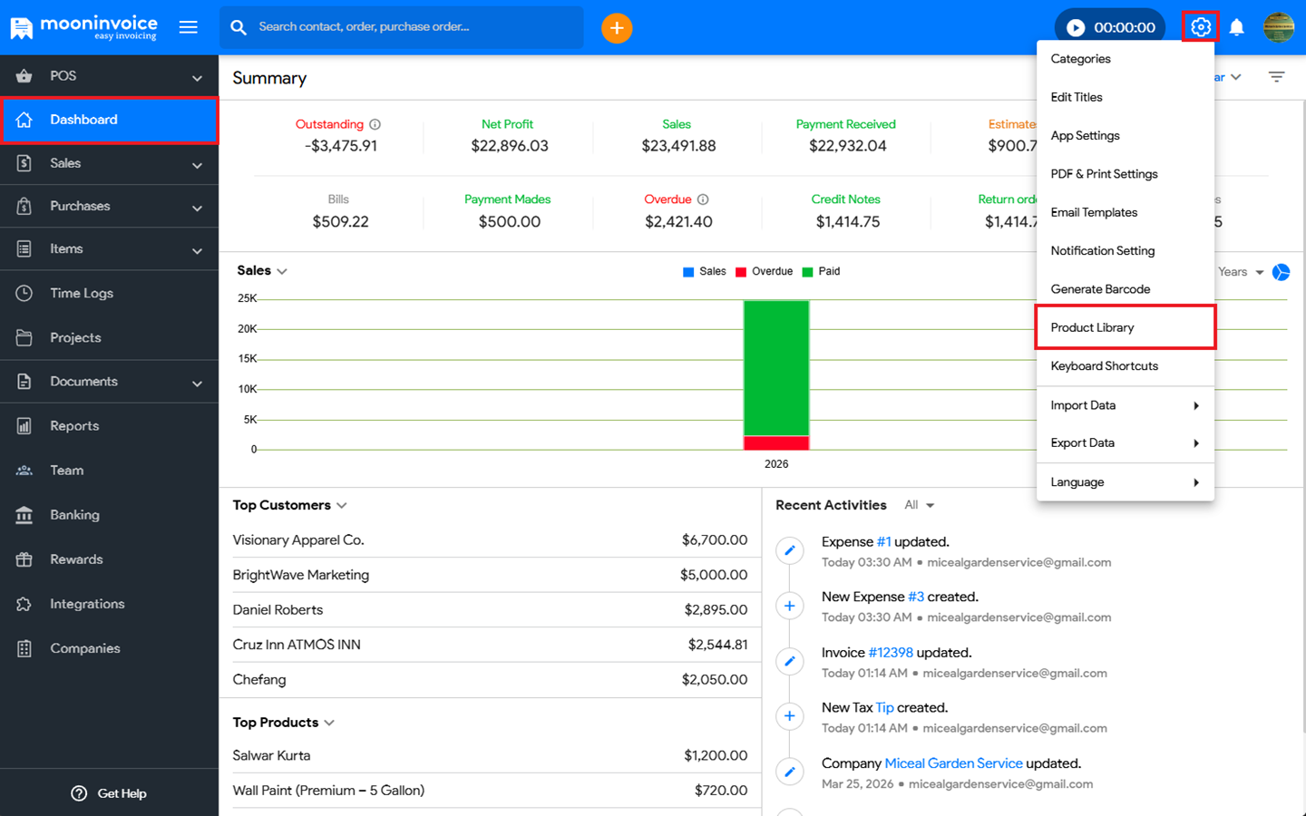 You can easily use the pre-defined product that is present under Moon Invoice by following the steps below: