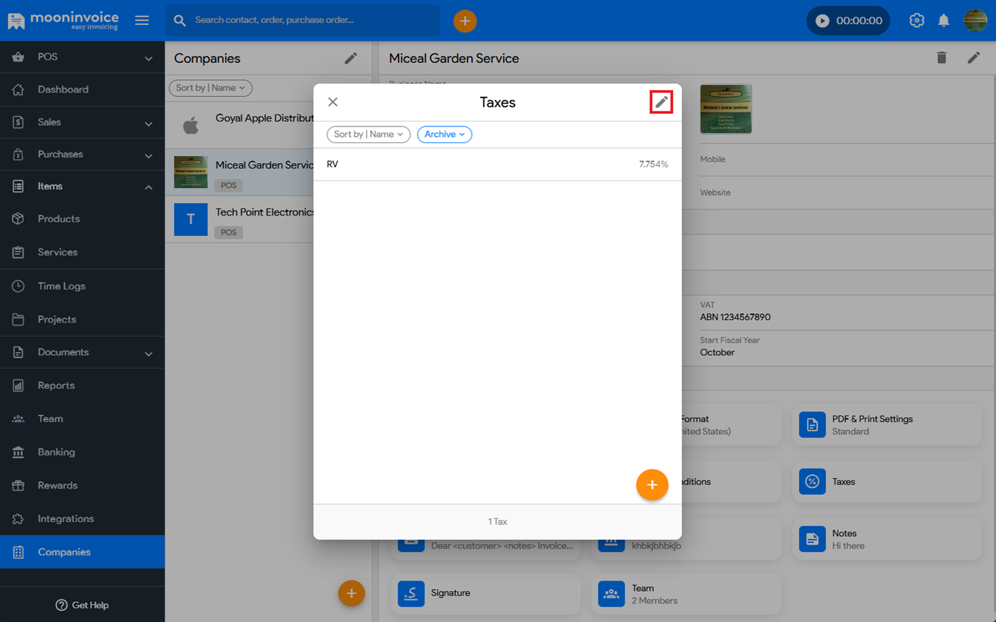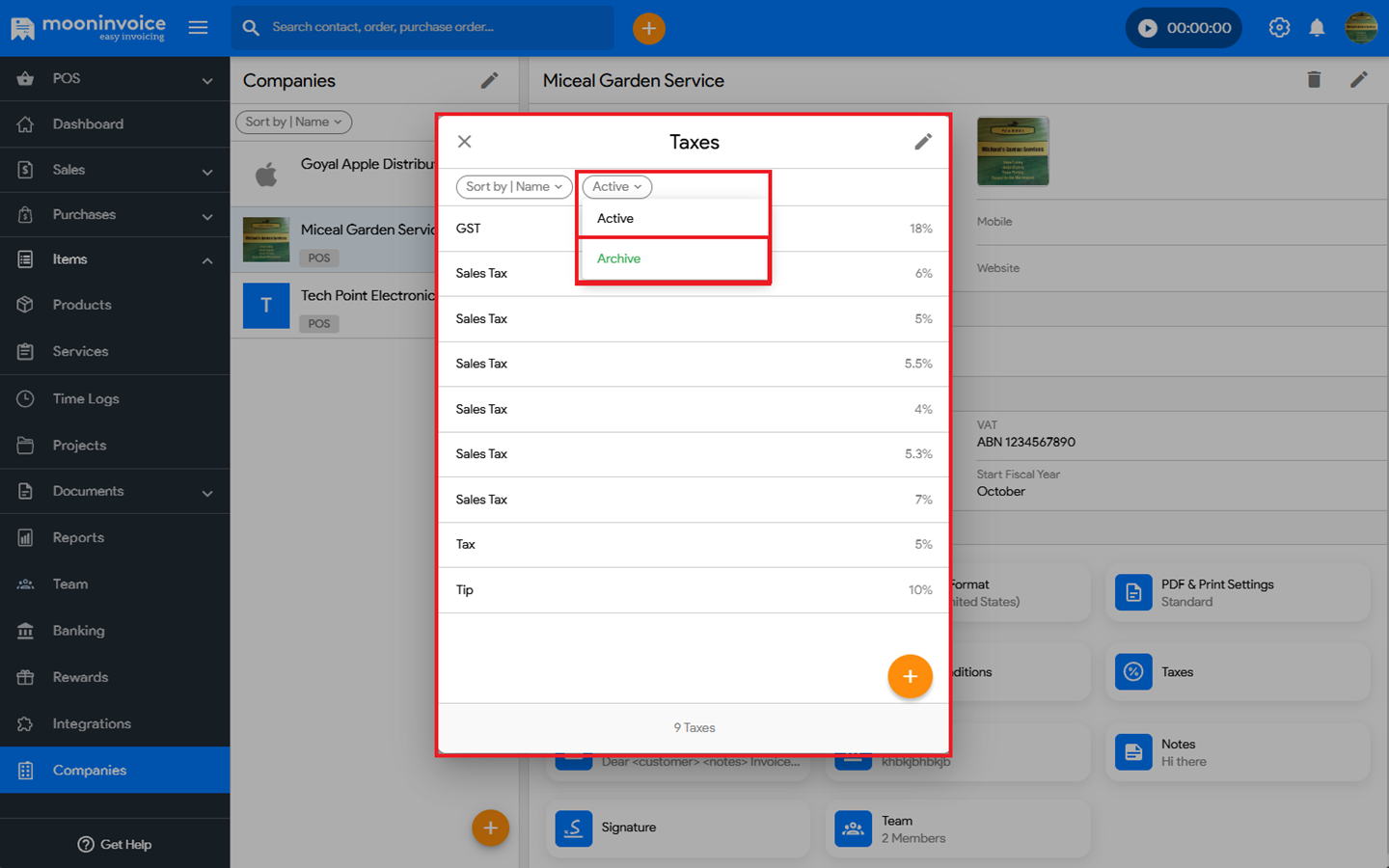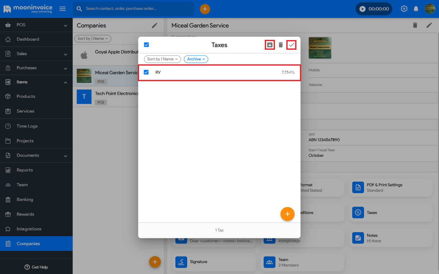 You can easily unarchive the taxes in Moon Invoice by following the steps below: