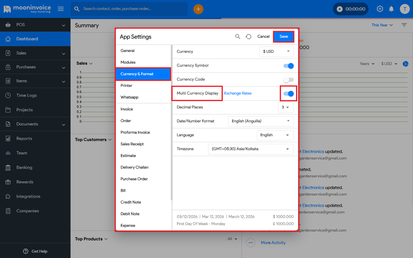 You can easily enable the Multi-currency Display option in Moon Invoice by following the steps below.